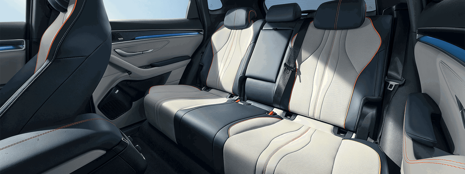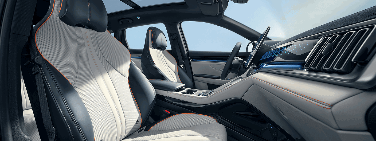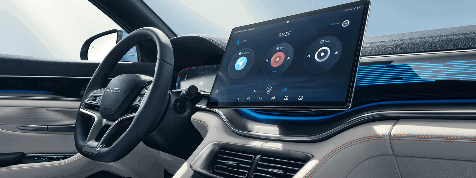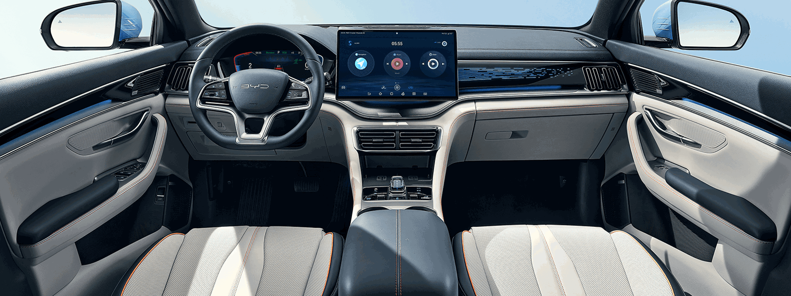 BYD SEAL U DM-i interjööril on futuristlik disain, mida tõstab esile hõljuv keskkonsool koos kahekihilise panipaigaga, mis ühendab praktilisuse elegantsiga.